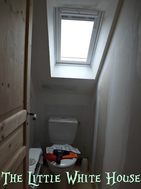 I'd love to tell you the loo is perfect, but there are still more things to do... Finding a shelf to go above the toilet, finding a sconce to replace the amazing light bulb I use for now, adding molding around the door and painting the door... I could be doing all those things right now, but I'm busy keeping an eye on a cat who has now a huge scar on his back, locked in the office, while two workers have taken the power in the living-room for a project that I hope to show you at the end of June...